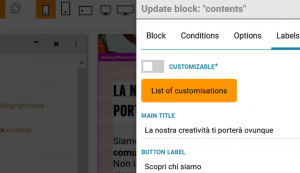 Per quanto riguarda il componente Zones, è stata migliorata la gestione dei blocchi, in particolare la possibilità di personalizzare le impostazioni e le etichette verbali in base alle pagine in cui sono contenuti. Ora è possibile controllare tutte le personalizzazioni effettuate direttamente nelle impostazioni di un blocco e queste possono essere visualizzate in un nuovo elenco accessibile tramite l'inspector dei blocchi.